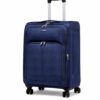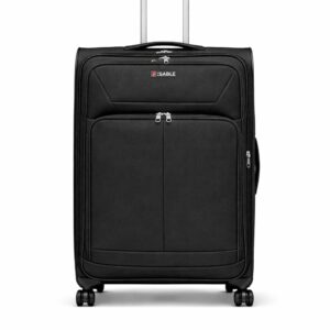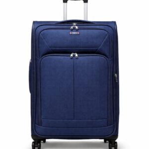 This expandable suitcase offers up to 20% extra space with a built-in lock and durable zipper for secure travel. Made from lightweight, water- and stain-resistant nylon, it features front pockets, interior straps, and smooth 360° spinner wheels for easy movement. Dimensions include wheels and handles; no side handle on Small and Medium sizes.