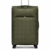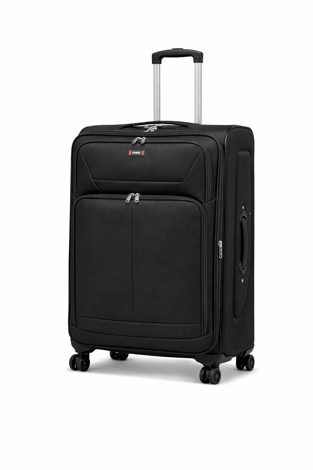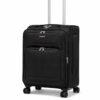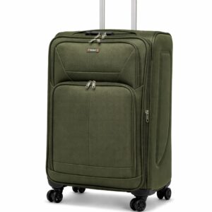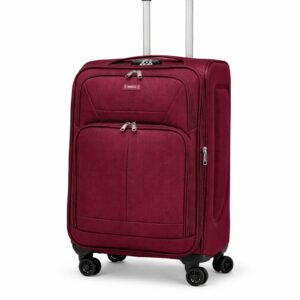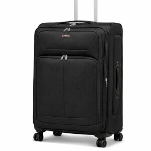 This expandable suitcase offers up to 20% extra packing space and features a built-in combination lock with a durable heavy-duty zipper. Made from lightweight, water- and stain-resistant nylon with reinforced edges, it ensures long-lasting use. Front pockets provide quick access, while the interior mesh pocket and cross straps keep items secure. Smooth 360° spinner wheels and a 2-level telescopic handle allow easy movement. Dimensions include wheels and handles; Small and Medium sizes have no side handle.
